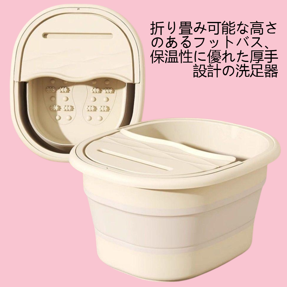 厚手設計で保温性が高い折りたたみ式足湯。家庭用で簡単収納、省スペース、持ち運び便利。自宅で手軽に足元を温めリラックス可能。