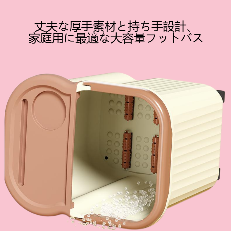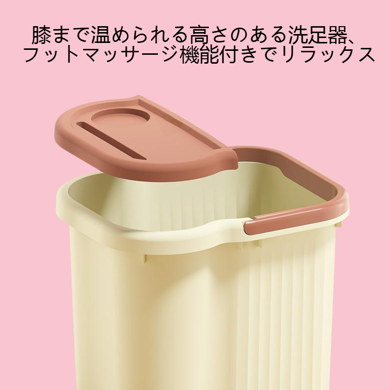 膝上げ足裏マッサージ厚め足入れバケツは、足裏を包み込む厚手設計で快適なマッサージをサポート。自宅で手軽に足の疲れをケアできるアイテム。
