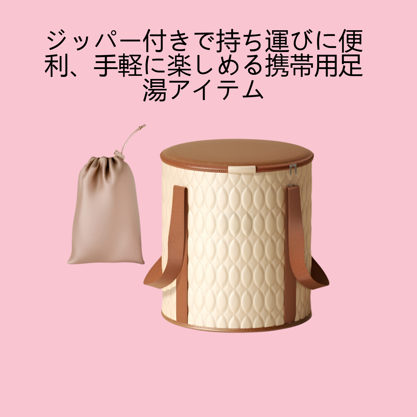 コンパクトに折り畳める円形足湯バケツ。高さ調整可能で収納便利。耐久性素材採用、持ち運び簡単。家庭や旅行先で手軽にリラックス。